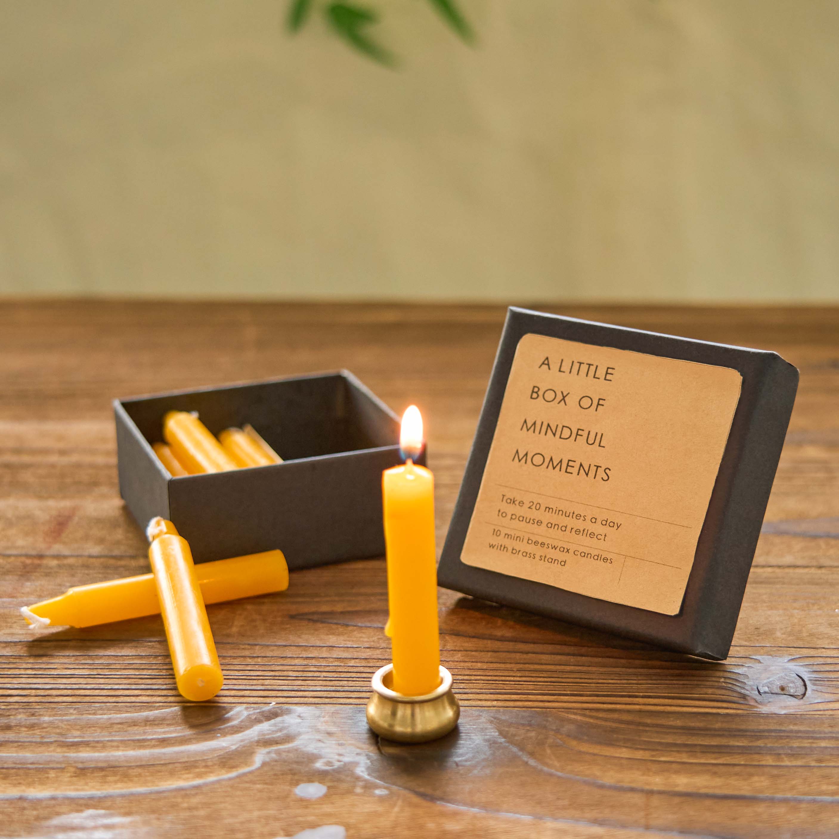 - 10 mini candles, brass stand and presentation box